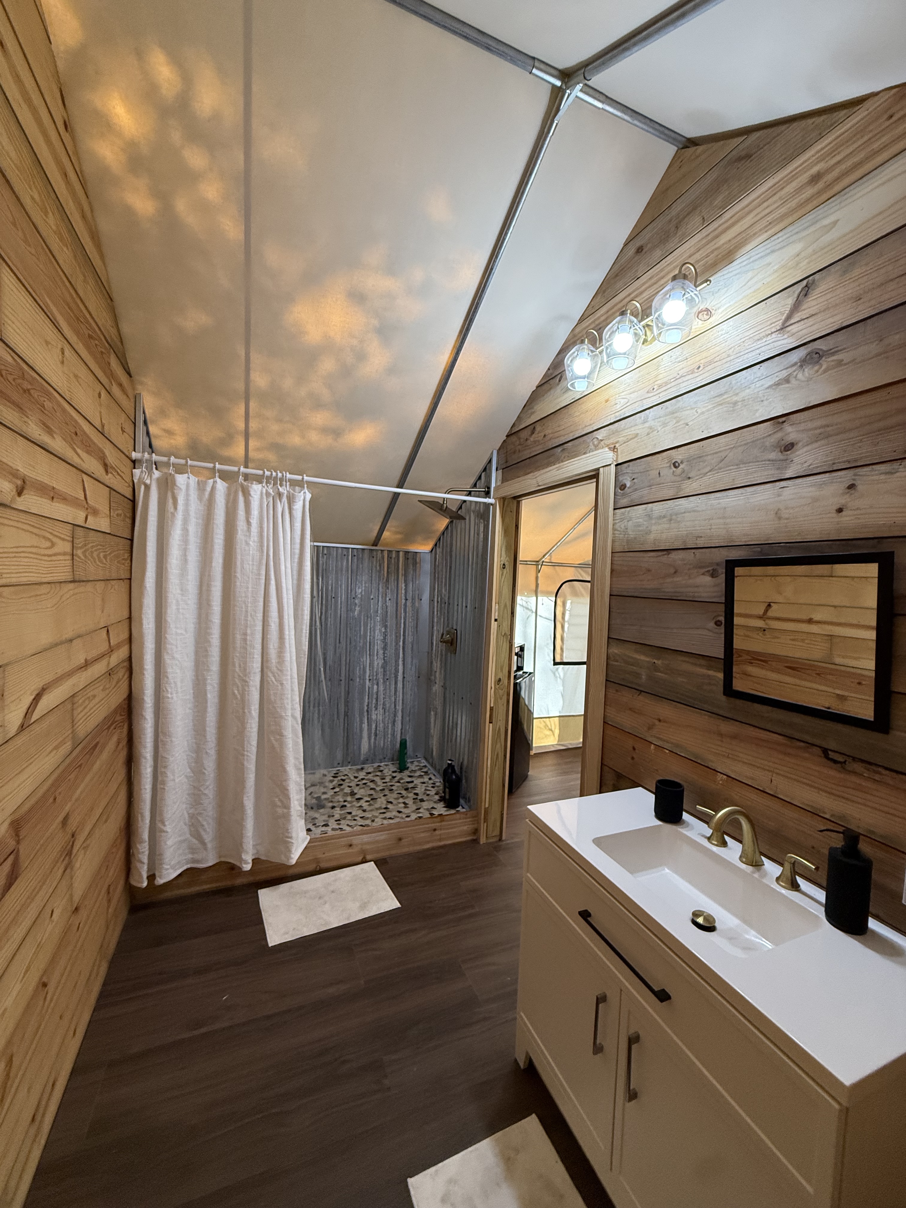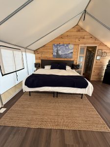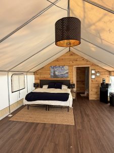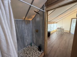 • A private, fully furnished canvas tent with ensuite bath