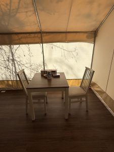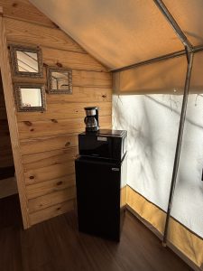• Air conditioning, coffee setup, and in-tent amenities