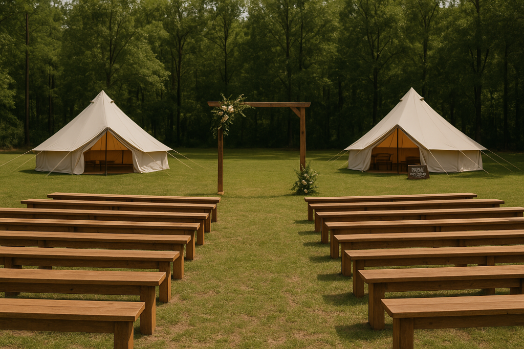 Imagine arriving with your closest people, settling into canvas tents beneath the trees, gathering around the fire that evening, and waking up the next morning still together.